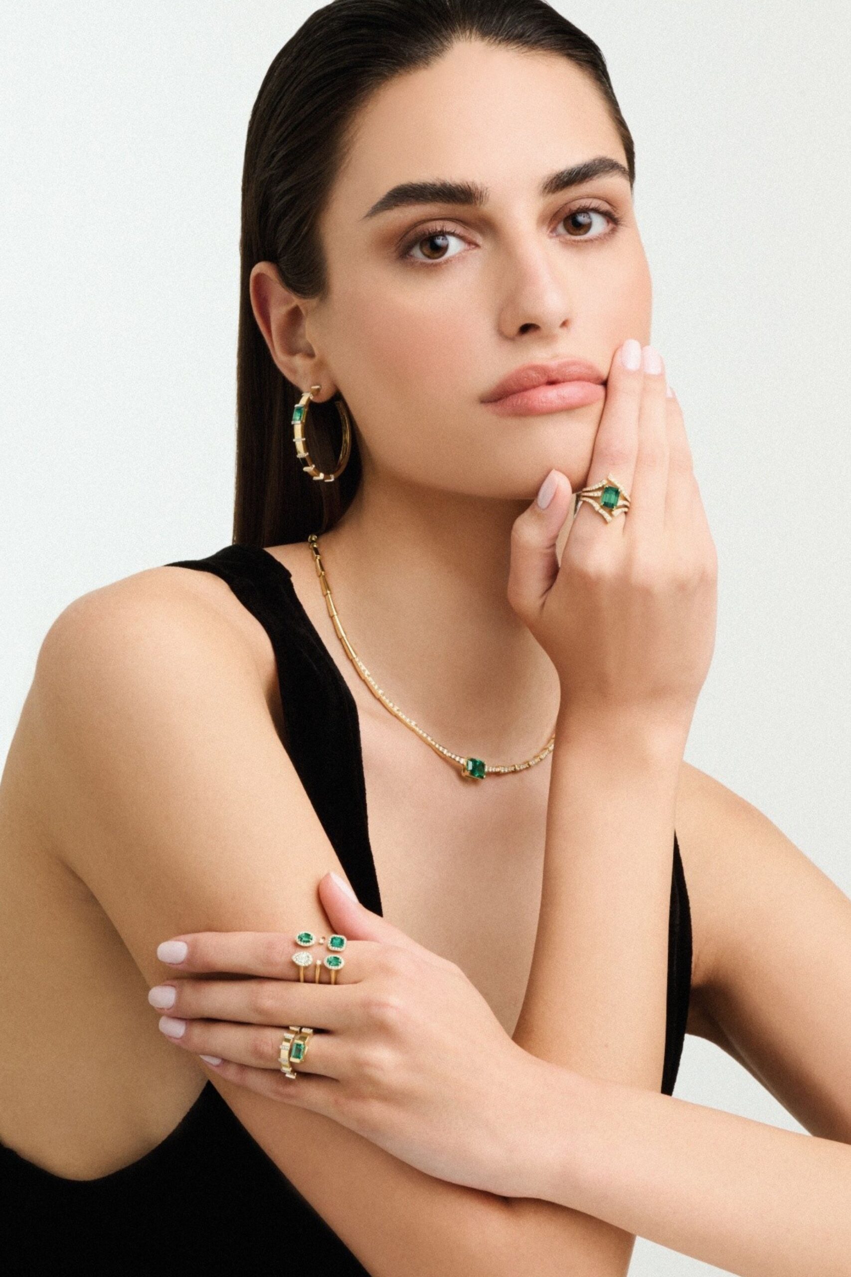 Emeralds are beautifully paired with yellow gold, its warm, rich tone oenhances the deep green of emeralds and creates a regal, timeless look.