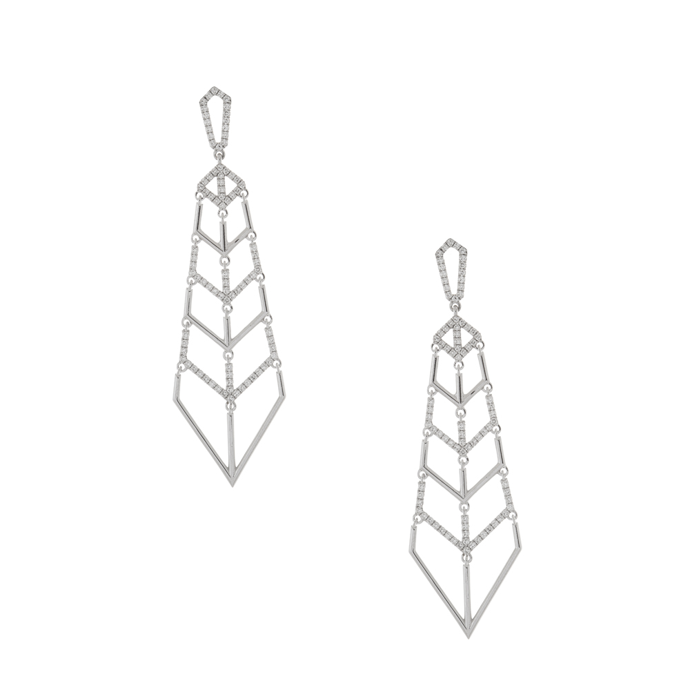 The poetic symmetry of geometric lines and architectural forms is brought to life with a delicate yet powerful feminine aesthetic. The Peristeriones Collection (Dovecotes) is a sophisticated mantra of finely tuned patterns in 18 carat gold with diamonds in a graceful yet thrilling array of rings, pendants and hanging earrings.
