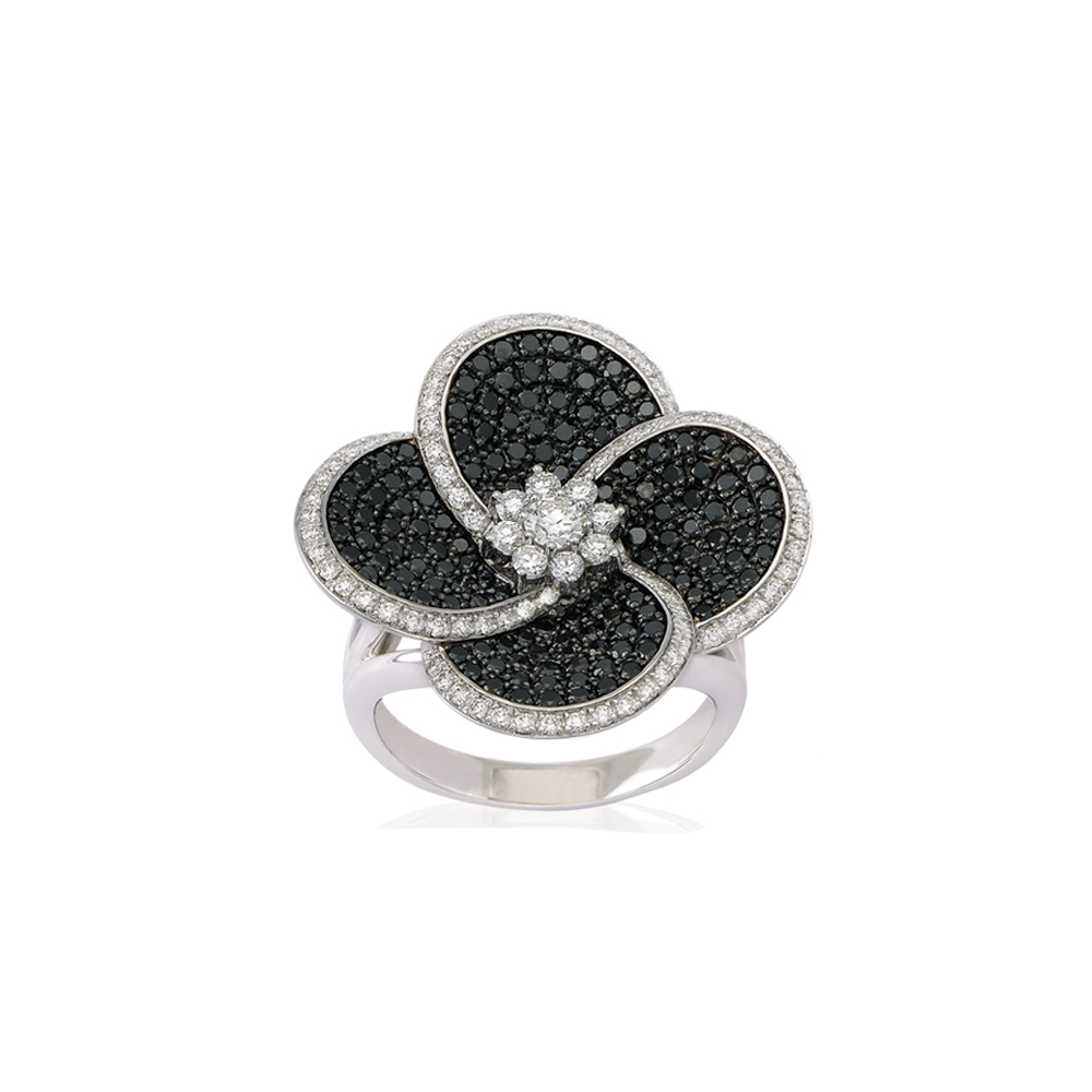 The ‘Volcanic Flower Collection’ by awarded jewellery designer Yiorgos Poniros is handcrafted in 18 carat gold with diamonds, a tribute to the breathtaking island of Santorini.