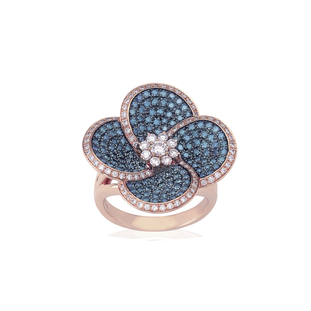 The ‘Volcanic Flower Collection’ by awarded jewellery designer Yiorgos Poniros is handcrafted in 18 carat gold with diamonds, a tribute to the breathtaking island of Santorini.