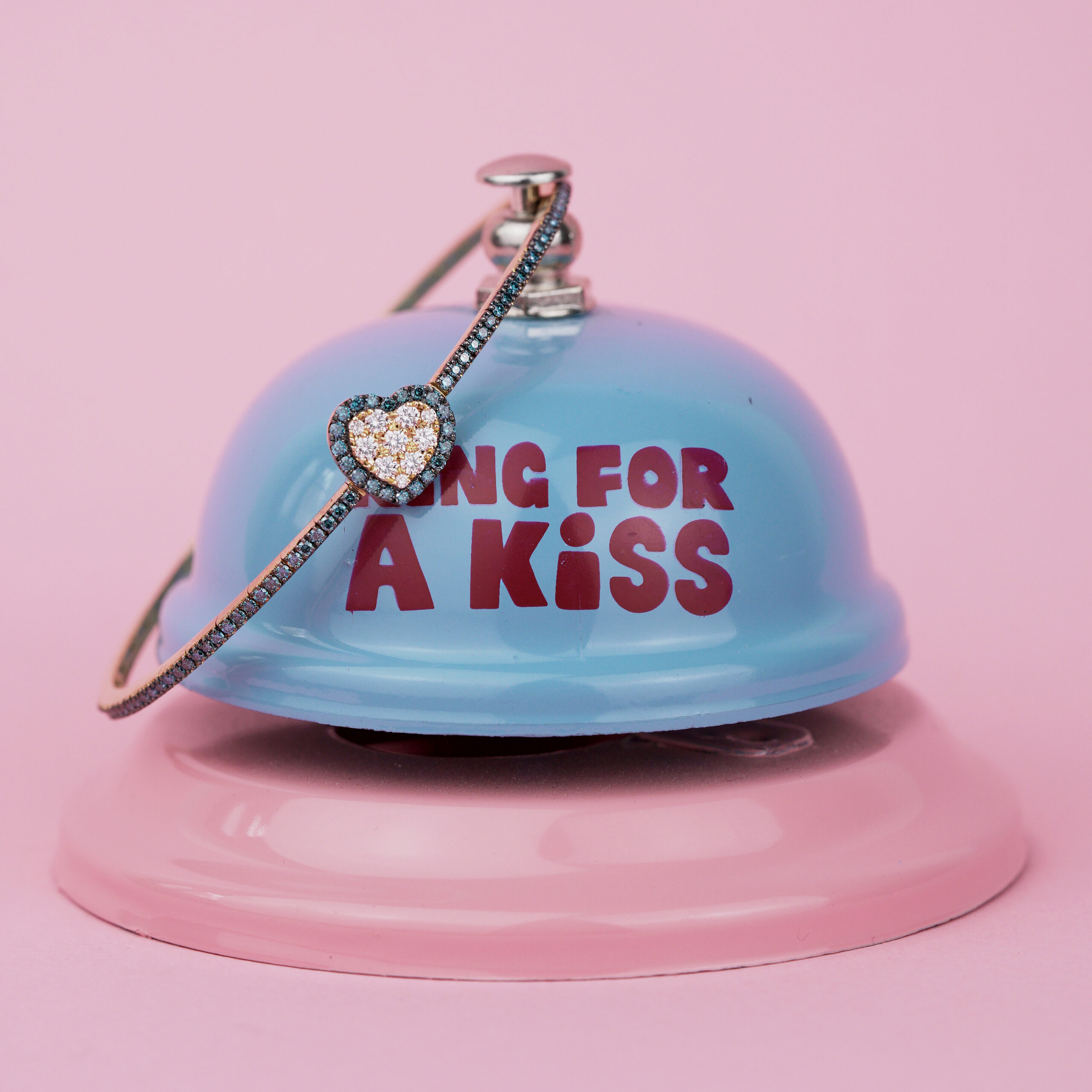 A heart-shaped bracelet in 18kt yellow gold, set with 0.64ct blue and 0,25ct white brilliant diamonds — a timeless expression of love and elegance, perfect for Valentine’s Day.