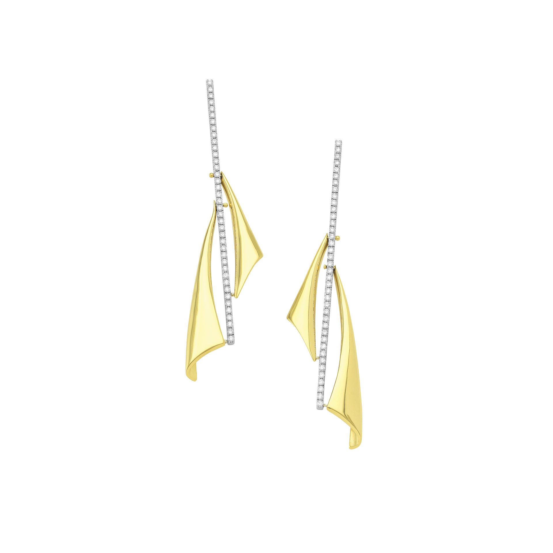 The rhythms of the wind and water, along with the peace of open seas provide a unique experience. Beautifully curved sails in 18kt gold with a dazzling mast of white diamonds. Tribute to designer Fotis Poniros.