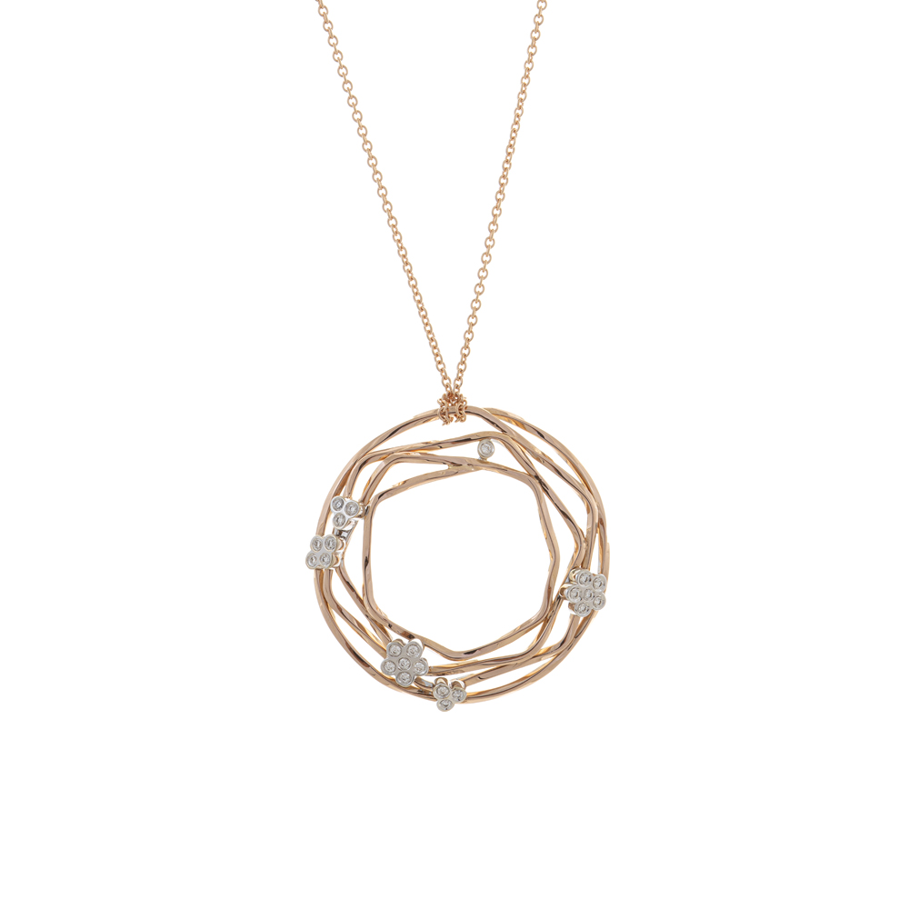 Vines artfully woven into a wreath, the noble grape of Santorini grows veiled and cherished. Famous for his soulful tributes to nature, Yiorgos Poniros ensures that each piece from this sparkling collection is intricately hand woven to precision making every creation one of a kind.